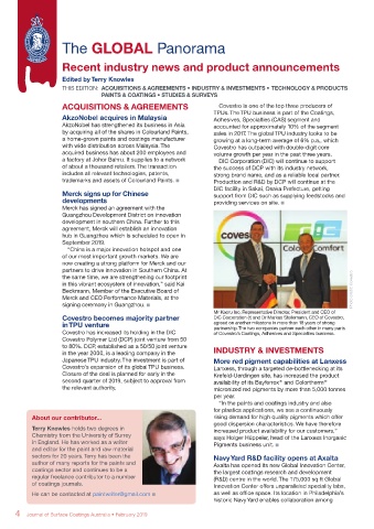 ACQUISITIoNS & AGREEMENTS Covestro is one of the top three producers of
