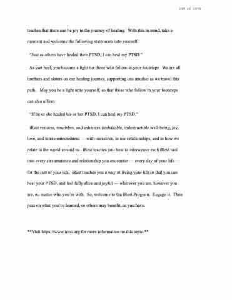 iRest restores, nourishes, and enhances unshakable, indestructible well-being, joy, love, and interconnectedness — with ourselves, in our relationships, and in how we relate to the world around us. iRest teaches you how to interweave each iRest tool into every circumstance and relationship you encounter — every day of your life — for the rest of your life. iRest teaches you a way of living your life so that you can heal your PTSD, and feel fully alive and joyful — wherever you are, however you are, no matter who you’re with. So, welcome to the iRest Program. Engage it. Then pass on what you’ve learned, so others may benefit, as you have.