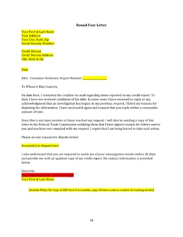 disputing the information. I have enclosed it again and request that you reply within a reasonable