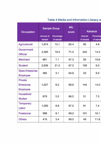 Table 4 Media and Information Literacy survey results compared by Occupation