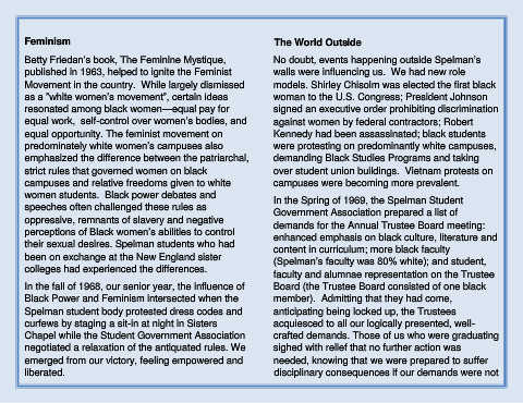 Betty Friedan’s book, The Feminine Mystique, No doubt, events happening outside Spelman’s