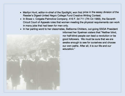 •  Marilyn Hunt, editor-in-chief of the Spotlight, won first prize in the essay division of the