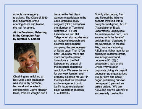 by Cynthia A. Lemon Telephone Laboratories was amazed with the level of