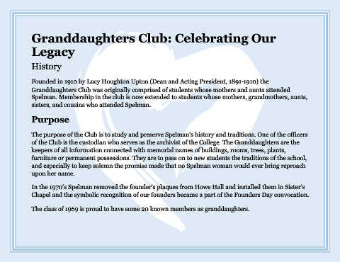 Granddaughters Club was originally comprised of students whose mothers and aunts attended