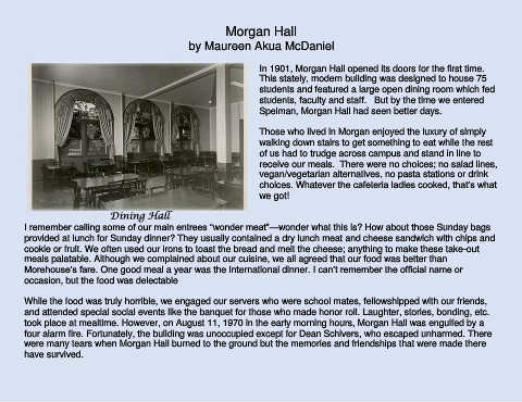took place at mealtime. However, on August 11, 1970 in the early morning hours, Morgan Hall was engulfed by a
