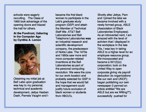by Cynthia A. Lemon Telephone Laboratories was amazed with the level of
