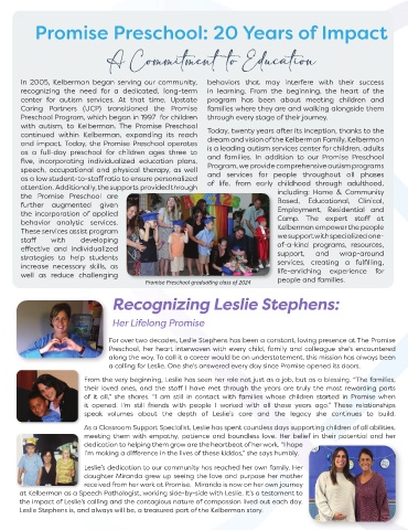 F or o v er t w o dec ades, L eslie S tephens has been a c onstan t, lo ving pr esenc e at T he P r omise