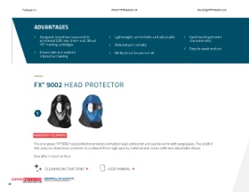 The one-piece FX 9002 head protector provides complete head protection and can be worn with eyeglasses. The shell of
