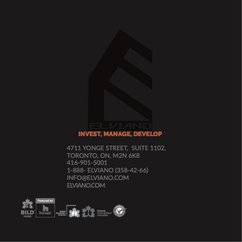 INVEST, MANAGE, DEVELOP 4711 YONGE STREET, SUITE 1102, TORONTO, ON, M2N 6K8 416-901-5001 1-888- ELVIANO (358-42-66) INFO@ELVIANO.COM ELVIANO.COM Featured on houzz