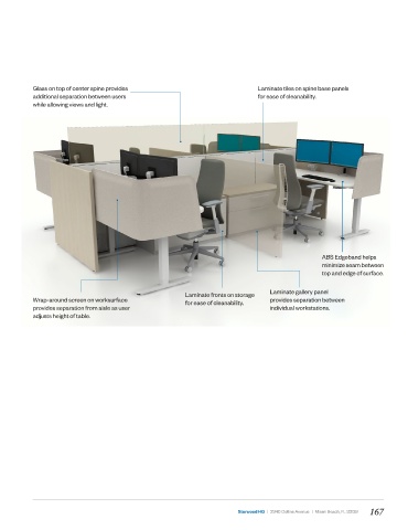 Wrap-around screen on worksurface for ease of cleanability. provides separation between
