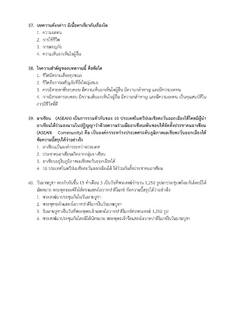 59. อาเซียน (ASEAN) เป็นการรวมตัวกันของ 10 ประเทศในทวีปเอเชียตะวันออกเฉียงใต้โดยมีผู้น า