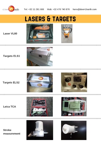 Tel: +32 11 281 666 Mob: +32 476 740 876 hans@down2earth.com lasers & targets Laser VL80 Targets ELS1 Targets ELS2 Leica TCA Stroke measurement