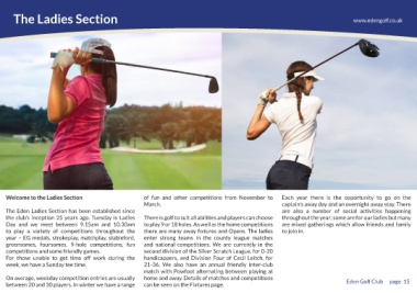 On average, weekday competition entries are usually home and away. Details of matches and competitions Eden Golf Club page 15