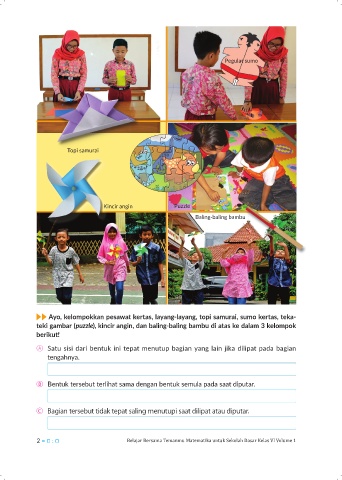 Ayo, kelompokkan pesawat kertas, layang-layang, topi samurai, sumo kertas, teka-
