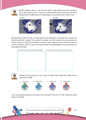 Berapa persen penurunan luas lautan es sejak bulan September 2006 sampai