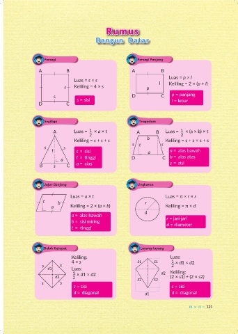 s Keliling = 4 × s p Keliling = 2 × (p + l)