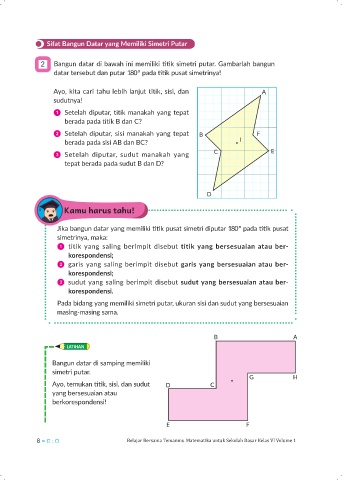 Jika bangun datar yang memiliki titik pusat simetri diputar 180° pada titik pusat