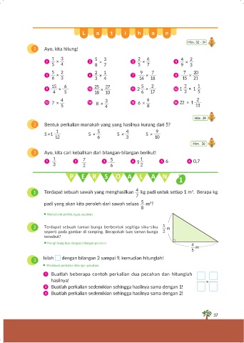 ❶ Buatlah beberapa contoh perkalian dua pecahan dan hitunglah