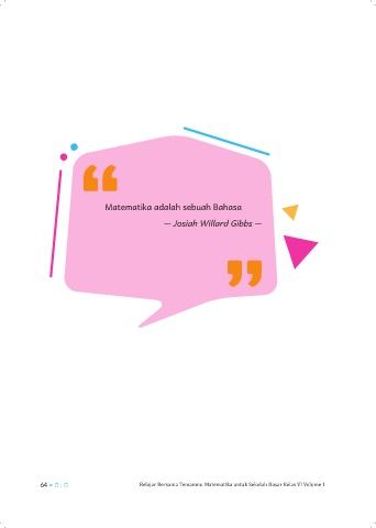 Matematika adalah sebuah Bahasa — Josiah Willard Gibbs — 64 = □ : □ Belajar Bersama Temanmu Matematika untuk Sekolah Dasar Kelas VI Volume 1