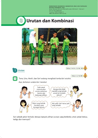 1 Tono, Lina, Andri, dan Sari sedang mengikuti lomba lari estafet.