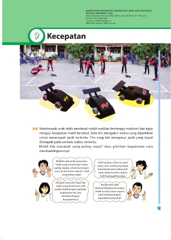 menguji kecepatan mobil tersebut. Satu tim mengukur waktu yang diperlukan