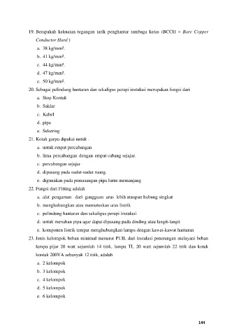 19. Berapakah kekuatan tegangan tarik penghantar tambaga keras (BCCH = Bare Copper