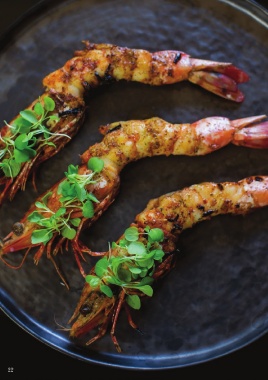 Tiger prawn, avocado cream, confit fennel, pickled grapes,