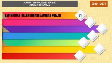 JABATAN : MSP INDUSTRIES SDN. BHD 2000 - 2001 JAWATAN : TECHNICIAN KEPIMPINAN DALAM BIDANG JAMINAN KUALITI 01