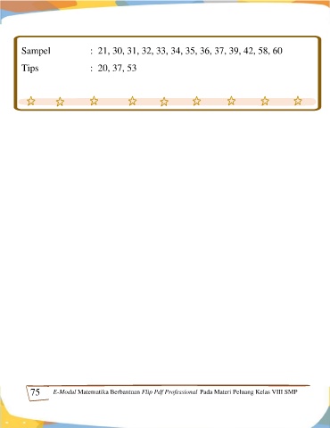 Sampel : 21, 30, 31, 32, 33, 34, 35, 36, 37, 39, 42, 58, 60 Tips : 20, 37, 53 75 E-Modul Matematika Berbantuan Flip Pdf Professional Pada Materi Peluang Kelas VIII SMP