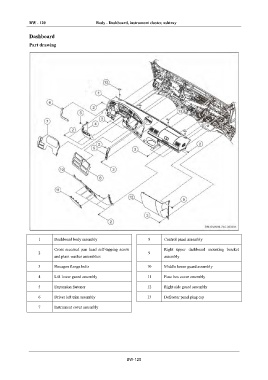 1 Dashboard body assembly 8 Control panel assembly