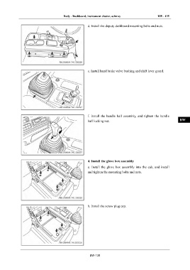 e. Install hand brake valve bushing and shift lever guard.