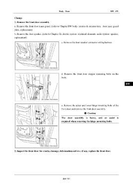 a. Remove the front door inner guard. (refer to Chapter BW body- interior & exterior trim –door inner guard DI