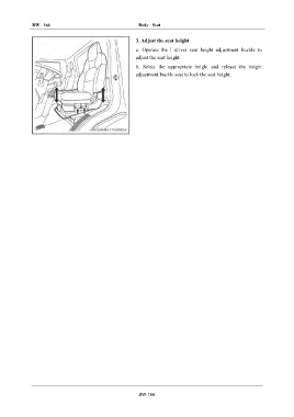 BW - 166 Body - Seat 3. Adjust the seat height a. Operate the f driver seat height adjustment buckle to adjust the seat height. b. Select the appropriate height and release the height adjustment buckle seat to lock the seat height. BW-166