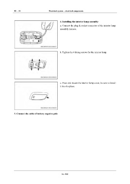 b. Tighten the 4 fixing screws for the interior lamp.