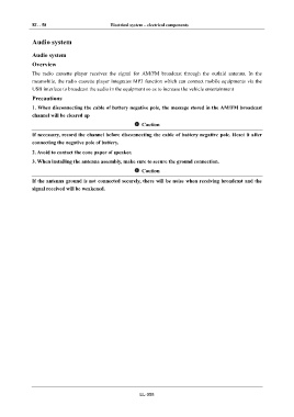 1. When disconnecting the cable of battery negative pole, the message stored in the AM/FM broadcast