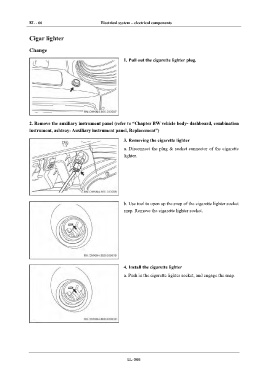 instrument, ashtray- Auxiliary instrument panel, Replacement”)