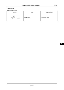 Electrical system – electrical components EL - 69 Preparation IN Recommended tools DI Picture Name Applicable range EG Speeder wrench Dismount the screws TR AX FR ST BR BW EL EL-069