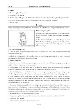 into the refrigeration system. Do not start the A/C system to avoid backflow. Add at least 200g refrigerant.