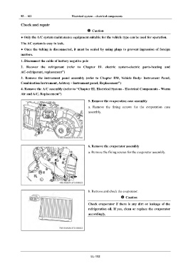 4. Remove the A/C assembly (refer to “Chapter EL Electrical System - Electrical Components - Warm