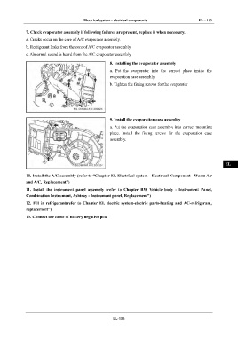 10. Install the A/C assembly (refer to “Chapter EL Electrical system - Electrical Component - Warm Air