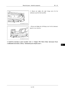 5. Install the instrument panel assembly (refer to “Chapter BW Vehicle Body- Instrument Panel,