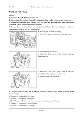 6. Check the warm air water tank if following failures are present. If yes, repair or replace the air