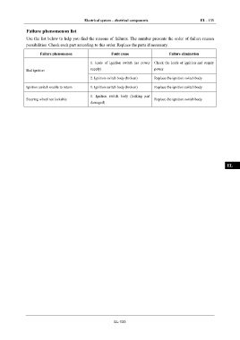 Ignition switch unable to return 1. Ignition switch body (broken) Replace the ignition switch body
