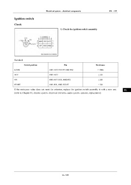 If the resistance value does not meet the criterion, replace the ignition switch assembly it with a new one. EL