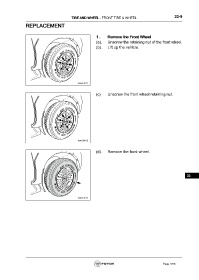 TIRE AND WHEEL - FRONT TIRE & WHEEL 33-9 REPLACEMENT 1 . Remove the Front Wheel (a). Unscrew the retaining nut of the front wheel. (b). Lift up the vehicle. (c). Unscrew the front wheel retaining nut. (d). Remove the front wheel. 33 Page 1015