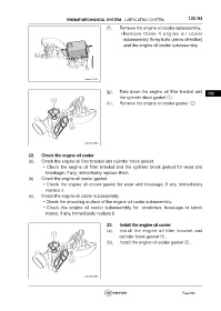 • Check the engine oil cooler gasket for wear and breakage; if any, immediately