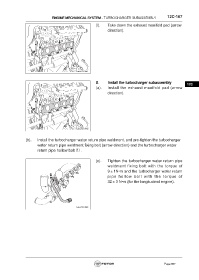 (b). Install the turbocharger water return pipe weldment, and pre-tighten the turbocharger