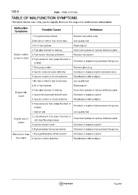 TABLE OF MALFUNCTION SYMPTOMS