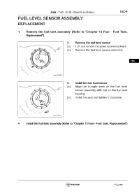 4. Install the fuel tank assembly (Refer to "Chapter 13 Fuel - Fuel Tank, Replacement")