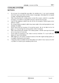 2. When disconnecting the cooling system or drain the coolant, collect it in a specified